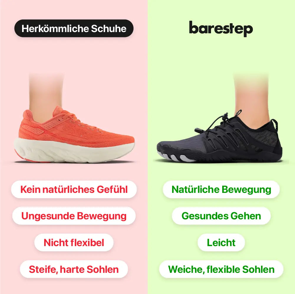 Are your feet hurting? Regular shoes are too stiff and cause pain in your feet, legs, and back. Barestep shoes fix this problem fast. Their thin, flexible soles let your feet move naturally.