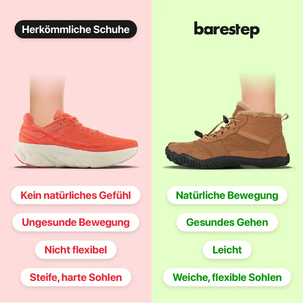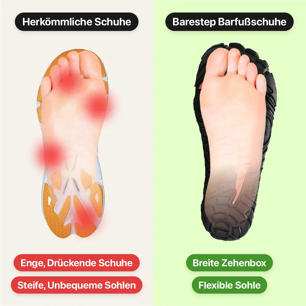 Are your feet hurting? Regular shoes are too stiff and cause pain in your feet, legs, and back. Barestep shoes fix this problem fast. Their thin, flexible soles let your feet move naturally.