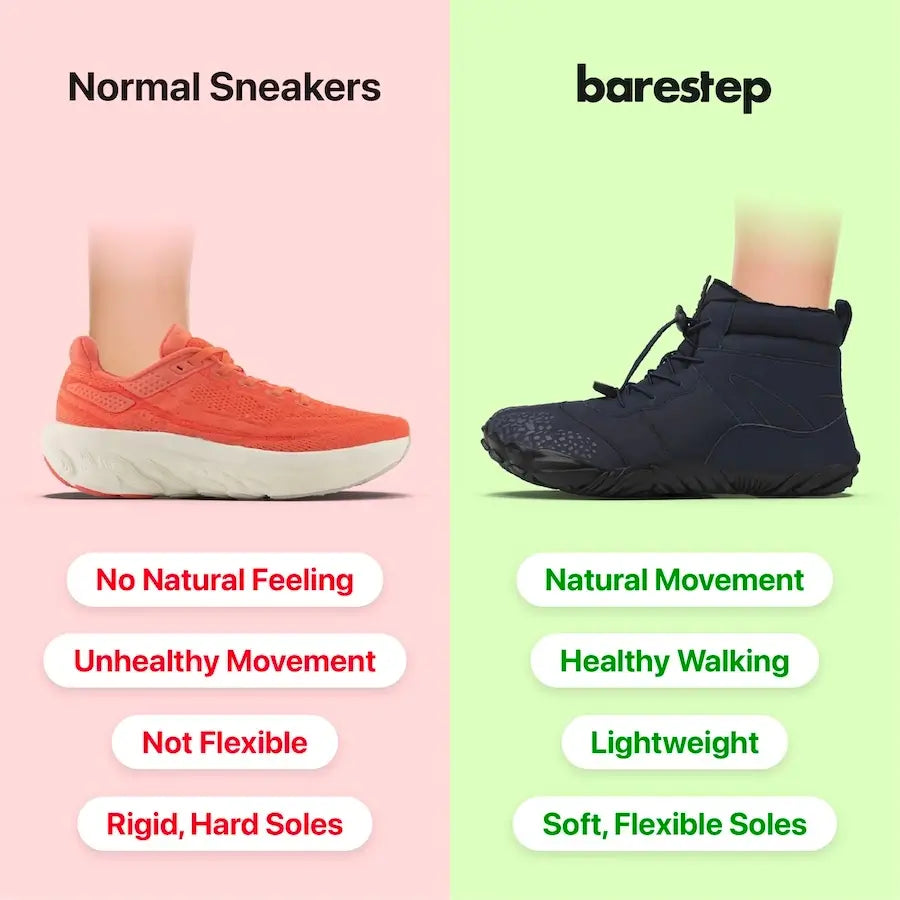 Are your feet hurting? Regular shoes are too stiff and cause pain in your feet, legs, and back. Barestep shoes fix this problem fast. Their thin, flexible soles let your feet move naturally.