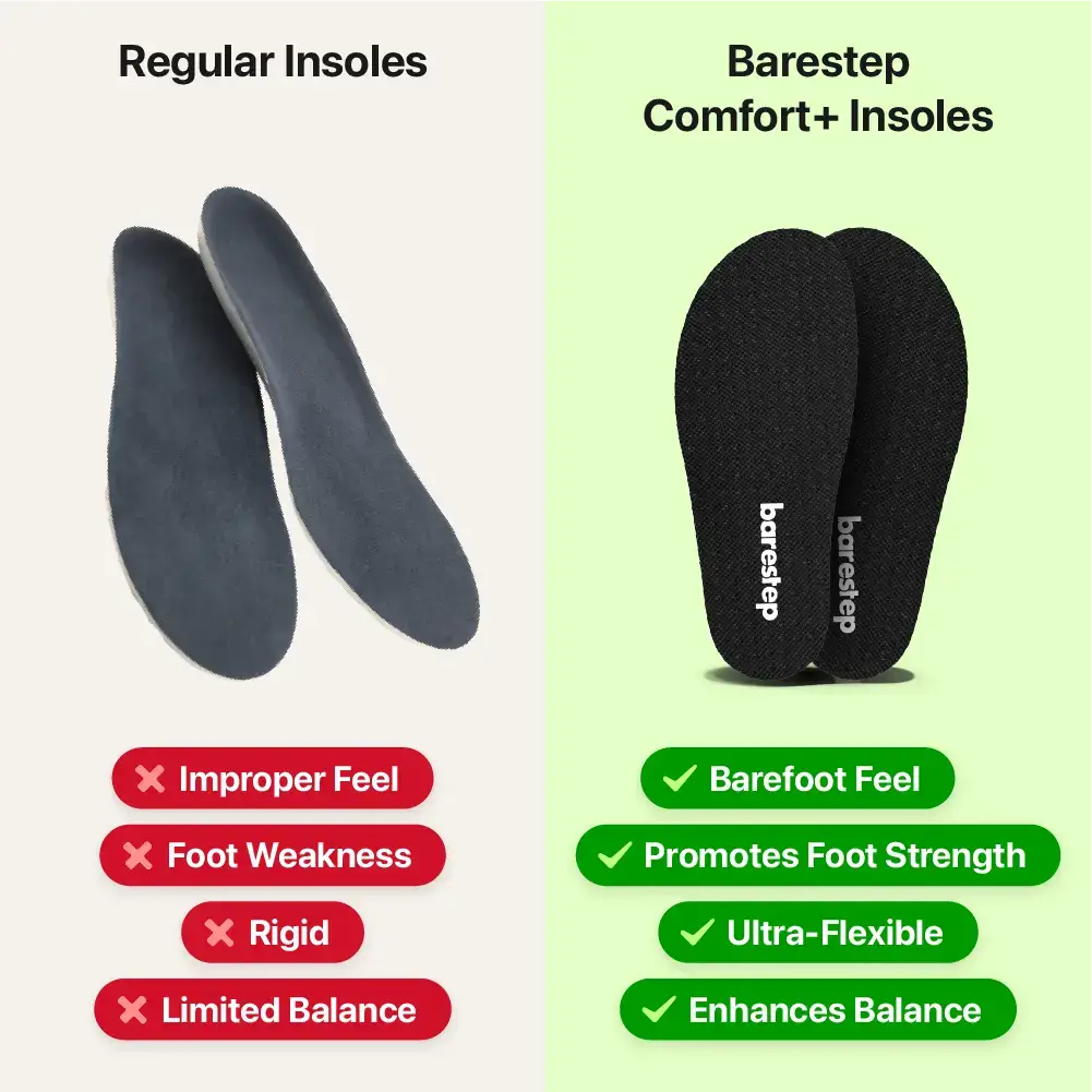 Are your feet hurting? Regular shoes are too stiff and cause pain in your feet, legs, and back. Barestep shoes fix this problem fast. Their thin, flexible soles let your feet move naturally.