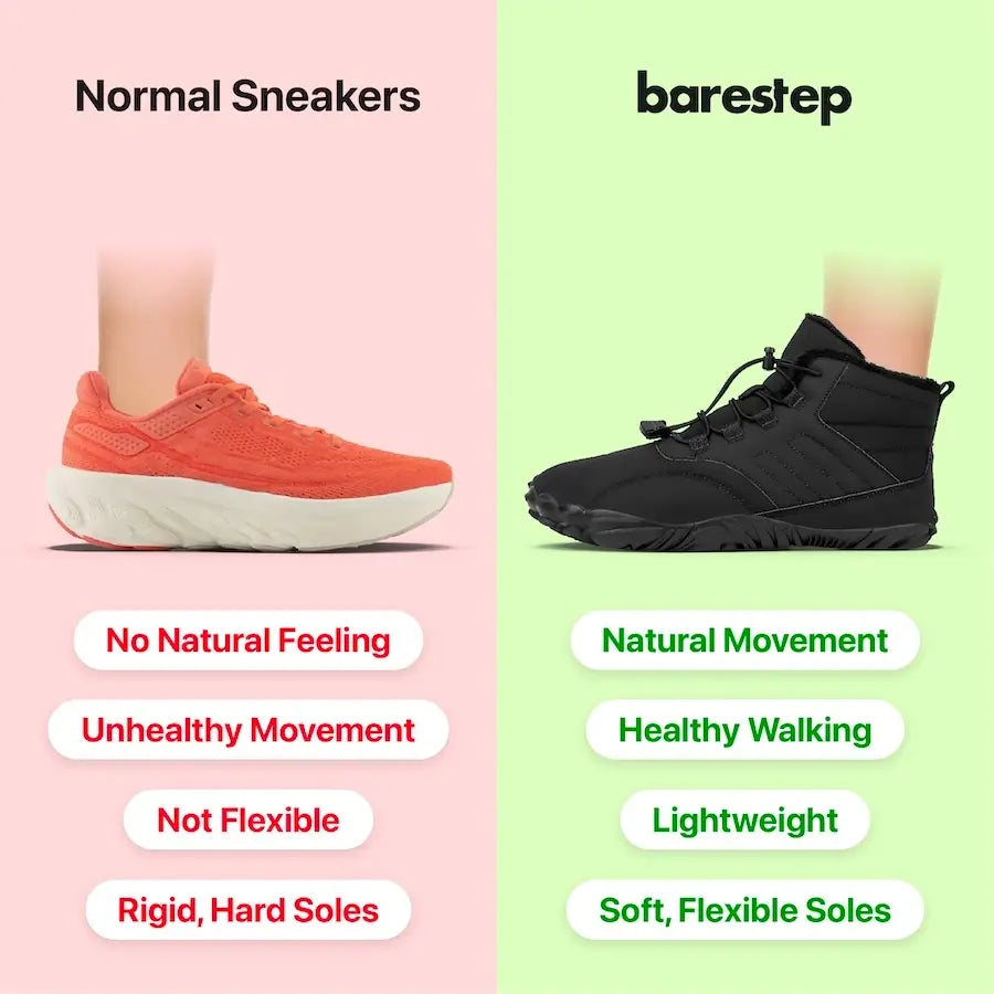Are your feet hurting? Regular shoes are too stiff and cause pain in your feet, legs, and back. Barestep shoes fix this problem fast. Their thin, flexible soles let your feet move naturally.