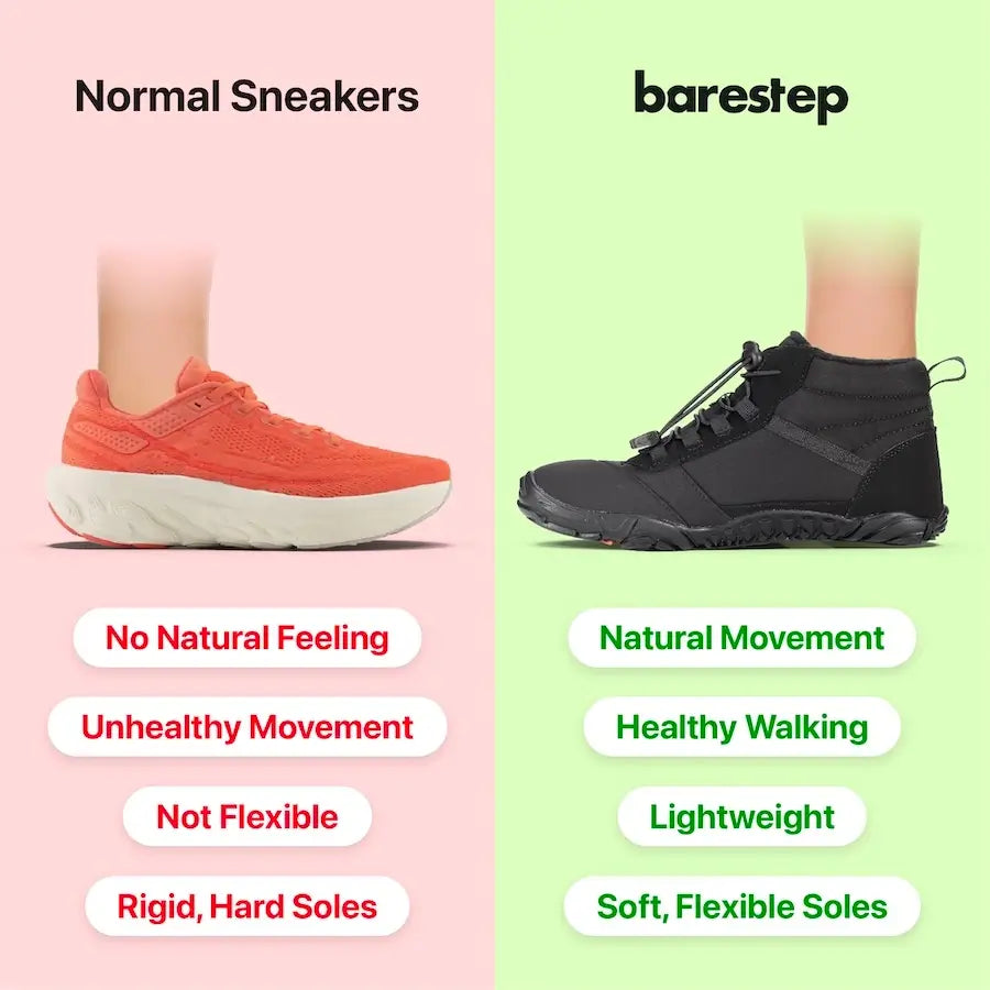 Are your feet hurting? Regular shoes are too stiff and cause pain in your feet, legs, and back. Barestep shoes fix this problem fast. Their thin, flexible soles let your feet move naturally.